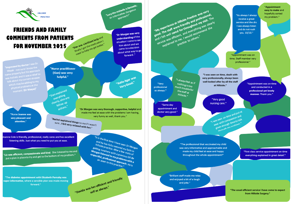 Here are a few comments from Friends & Family Test’s for the month of November 2025.