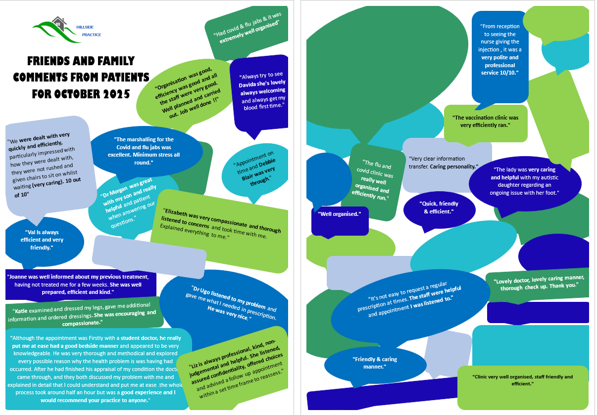 Here are a few comments from Friends & Family Test’s for the month of October 2025.