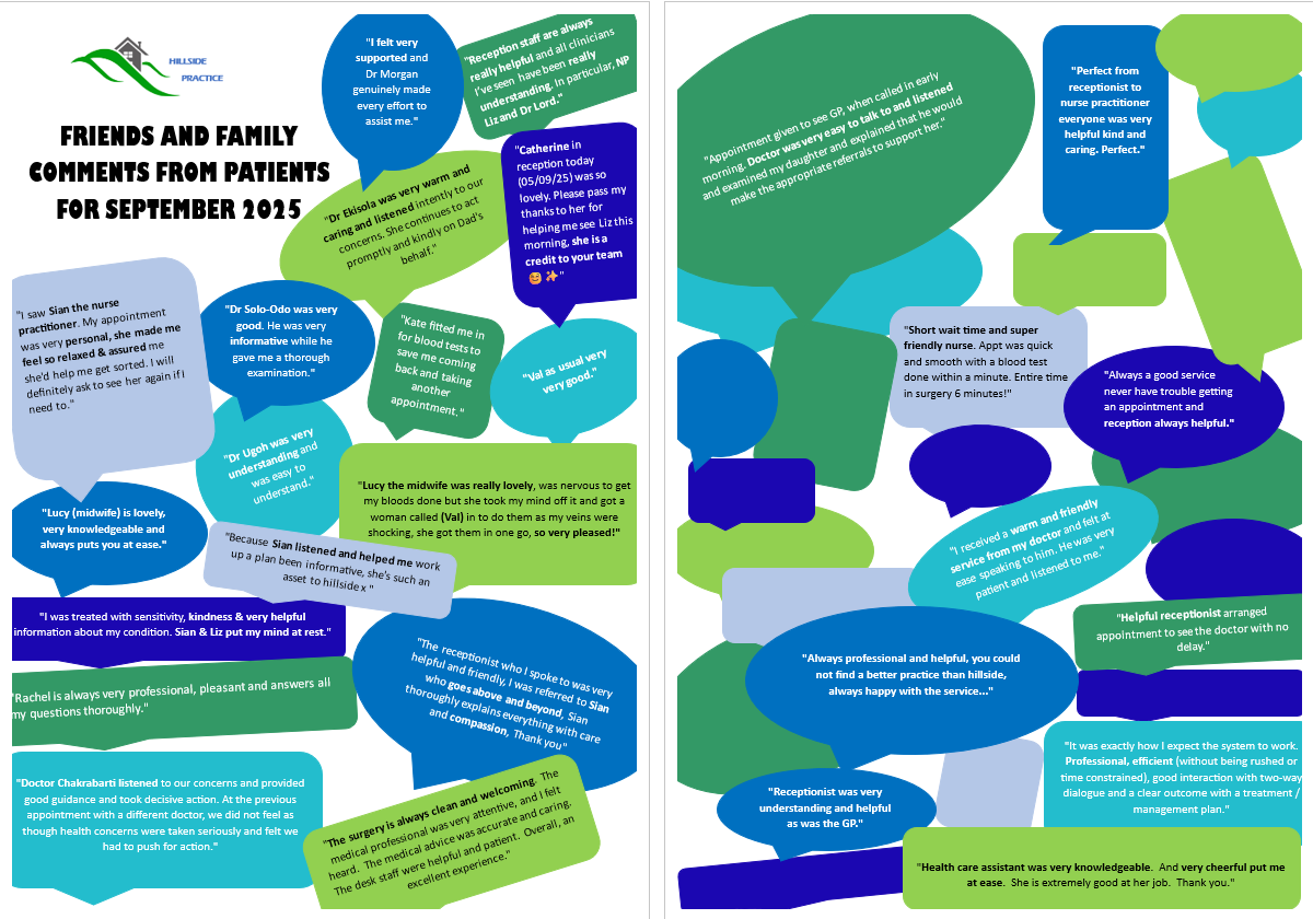 Here are a few comments from Friends & Family Test’s for the month of September 2025.