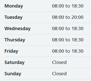 The surgery is offering patients longer opening hours. You are able to request an appointment with a nurse or GP between the hours of 08:00-08:30 daily, and on Tuesday evenings you will be able to see a GP until 20:00.